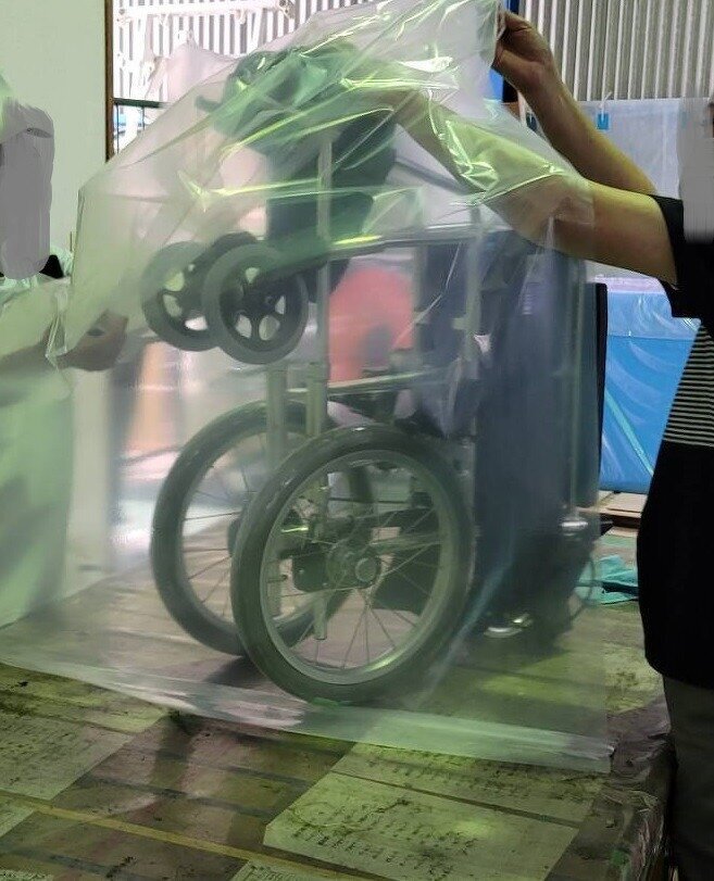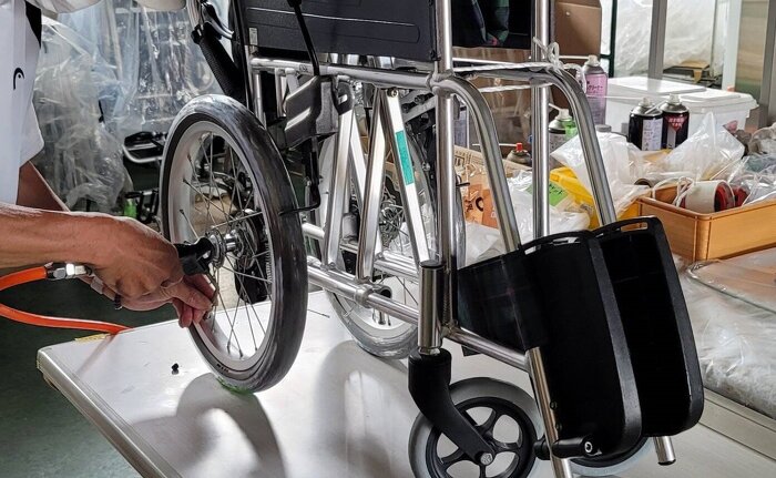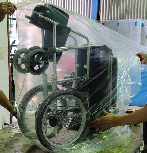 【管-100503様】車いす洗浄・消毒・光触媒コーティング 【管-100503様】より車いすの洗浄・消毒とオプションサービスの光触媒コーティングの依頼を受けました。 オゾン室での除菌→洗浄を経て、光触媒コーティングを行っています。 最後は、ベテラン職員による丁寧な梱包作業です。 作業がすべて完了し、お客様のご自宅へ戻る準備ができました。ご利用ありがとうございます。